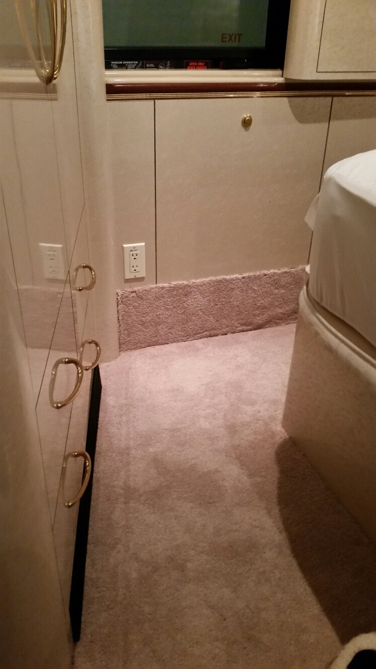 There are many 'Birds out there without a bedroom slideout. Here's a way to increase the width of your aisleway around the bed. This works especially well in bedrooms equipped with a cross aisle bed.