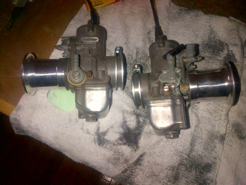Dellorto "pumper" 38s were only ever used on the three years of R90S, here are the rebuilt ones with new gaskets, clamps, isolators, fuel pumps, Tomasselli velocity stacks and more.