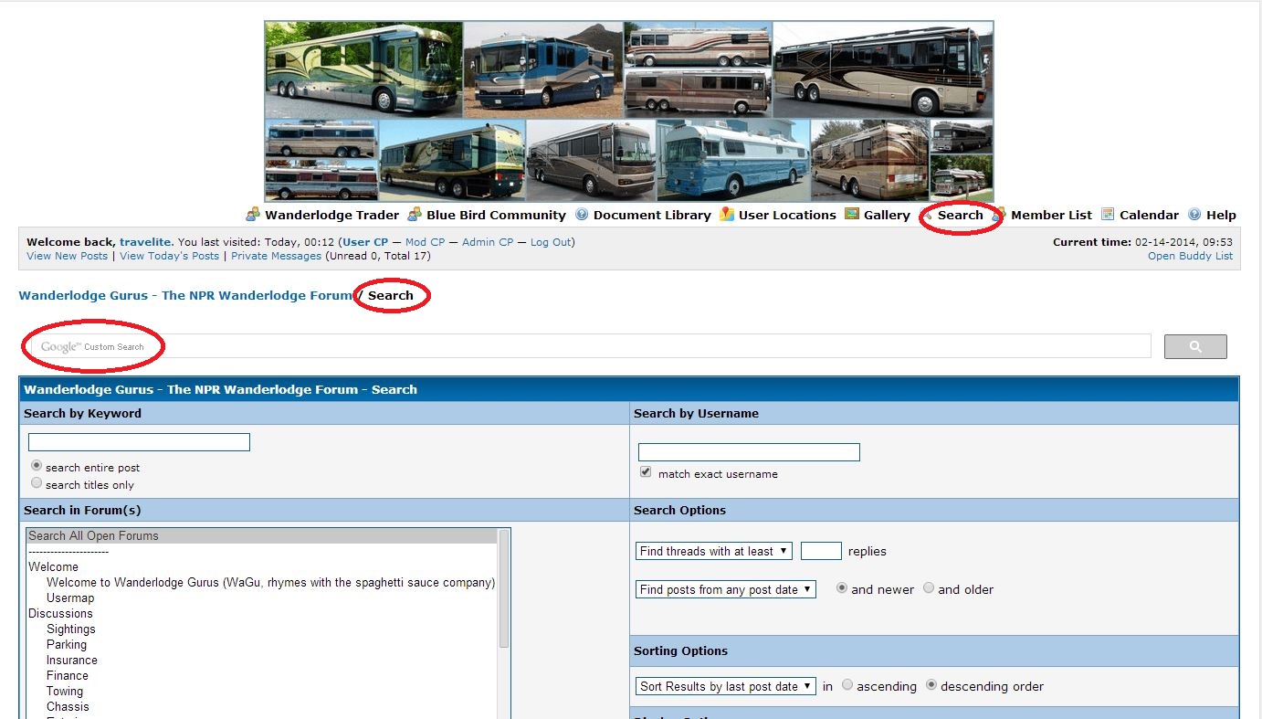 I added the famed and coveted Google Custom Search facility to WaGu's Search Page. Actually the google custom search is a free service by google. They provide the indexing, search, and even the code to plug into our html. It's free and as simple as pie to implement - just cut and paste. I decided to put it on our Search Page as opposed to our Index Page. Clearly it makes more sense to have it on our Search Page; that's simply where it belongs. Having it there avoids added clutter on our Index Page and it also avoids the inevitable performance penalty which now is only incurred when you go to the Search Page. Now you too can google search Wanderlodge Gurus just like the Big Boys! Let me know if you have any problems! Maybe I'll call this a birthday present for WaGu! ![]() Enjoy! david brady, '02 Wanderlodge LXi 'Smokey' (Sold), '04 Prevost H3 Vantare 'SpongeBob' "I don't like being wrong, but I really hate being right" |