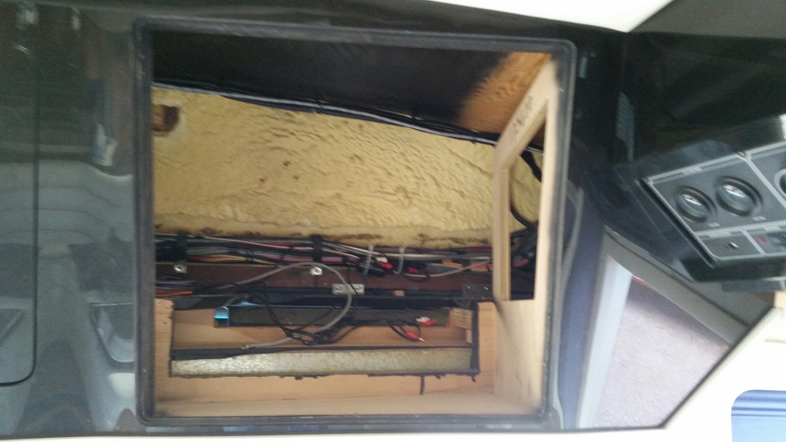 One of the problems with replacing the Audio & Video components while doing an update is finding where they are plugged in. Here’s another bit of information that may be helpful to others who intend to update their audio & video components. The 120vac outlets that power everything are hidden behind the ceiling of the center compartment. Remove two screws in the rear panel and remove it, then the ceiling panel will slide toward the back of the compartment and down. See Pic. Chuck & Tela Millsap 2003 Prevost Marathon XLII 2000 LXi #2 S/S (Sold) 2004 M380 D/S (Sold) 2000 LXi #1 N/S (Sold |
