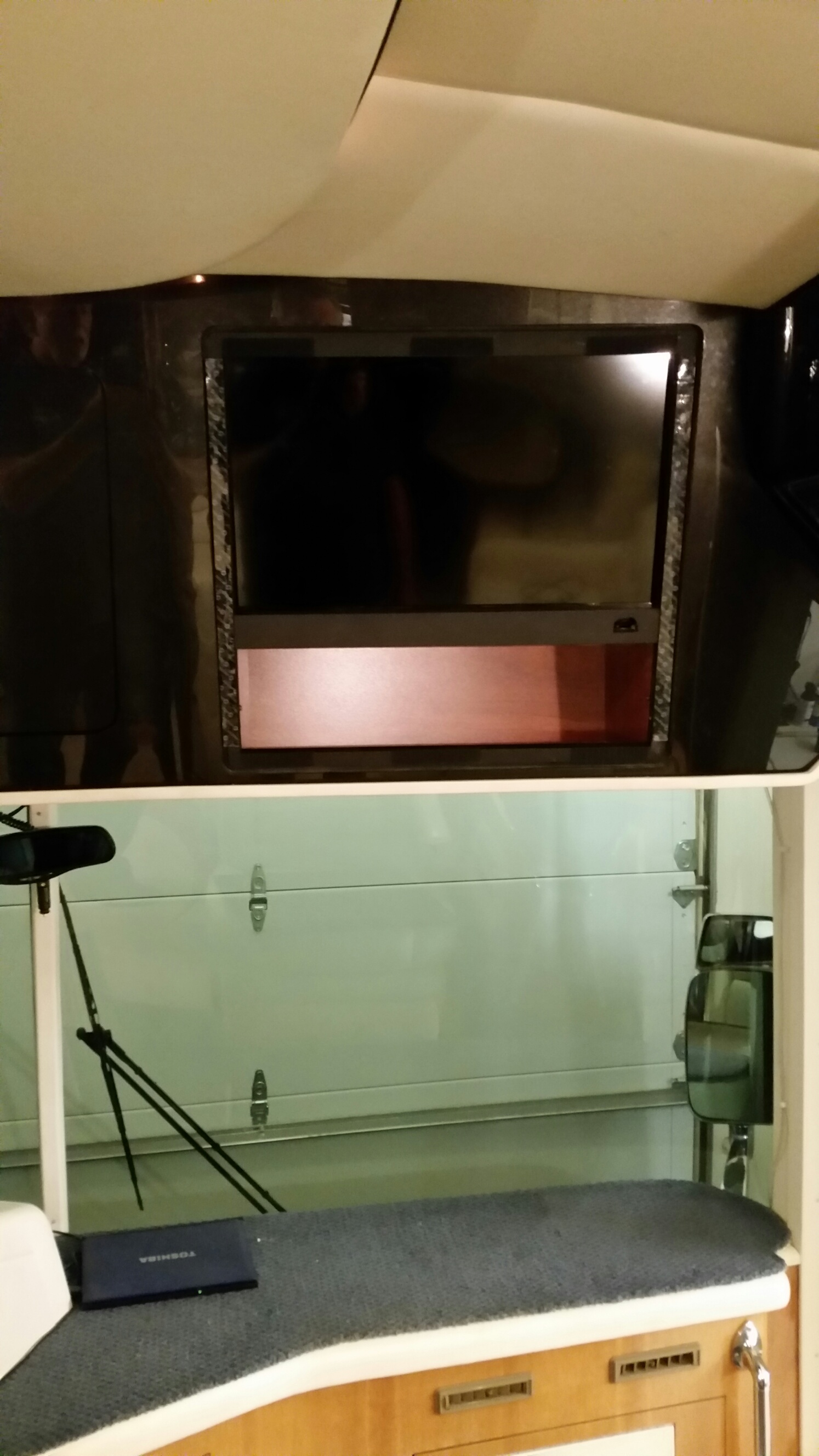 (01-10-2015 02:37)cmillsap Wrote: I’ve been thinking about upgrading my salon and bedroom TV(s) for a while now but I didn’t want to hang a big oversized flat screen on the interior of my bus. I already have a 42” HD flat screen in my second curbside bay. Further, I wanted to utilize the compartments that housed the original ProScan 21” CRT type TV(s) that BB installed when the bus was new. The trick was to find the largest snug fitting ones that would fit in the existing compartments. After much measuring and searching, I found the (2) Samsung 24” Smart LED TV(s) that just fit perfectly on Amazon. They are model # UN24H4500. The additional 3” in the screen size is proportionally perfect and fits the size of the rooms nicely. Nice! Curt Sprenger 1987 PT38 "MacAttack Racing" Anaheim Hills, CA cosresources@gmail.com |