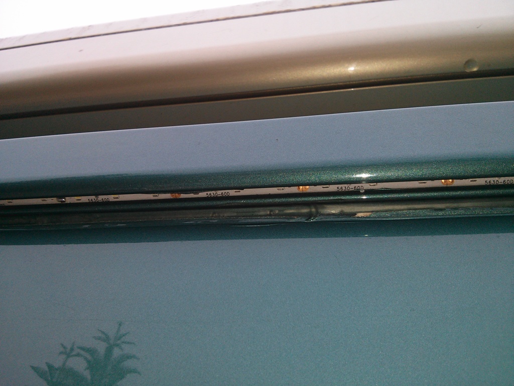 The LED's that change colour are 3528's or 5050's. The effect would be nice under the coach, but here I wanted function so opted for the much brighter 5630's. The location of the strip is inside the channel. I was also worried that much of the light would be blocked. It worked out fine as it is easily bright enough to read under.
