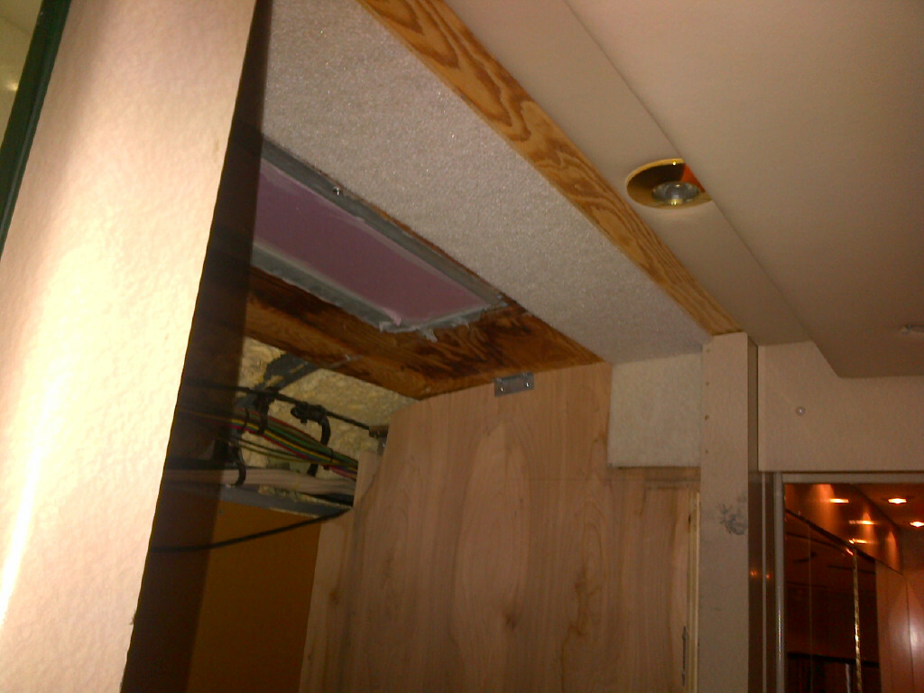 am assuming your AC/roof drop panel is similar. My bottom drawer measures 10" high X 32.5" wide (this is staying for my application). The entire box above the drawer (so add the drawer height back if you want) is 68" to the A/C panel or 70" to the roof. These measurements are with the top little cabinet removed. As you will see by these photos, the bracketry for my non-slide equipped (limited edition) coach is pretty straight forward and adds no further stand-off from the wall. I may elect to ties those wire bundles up higher. İmage İmage Does this look like yours?