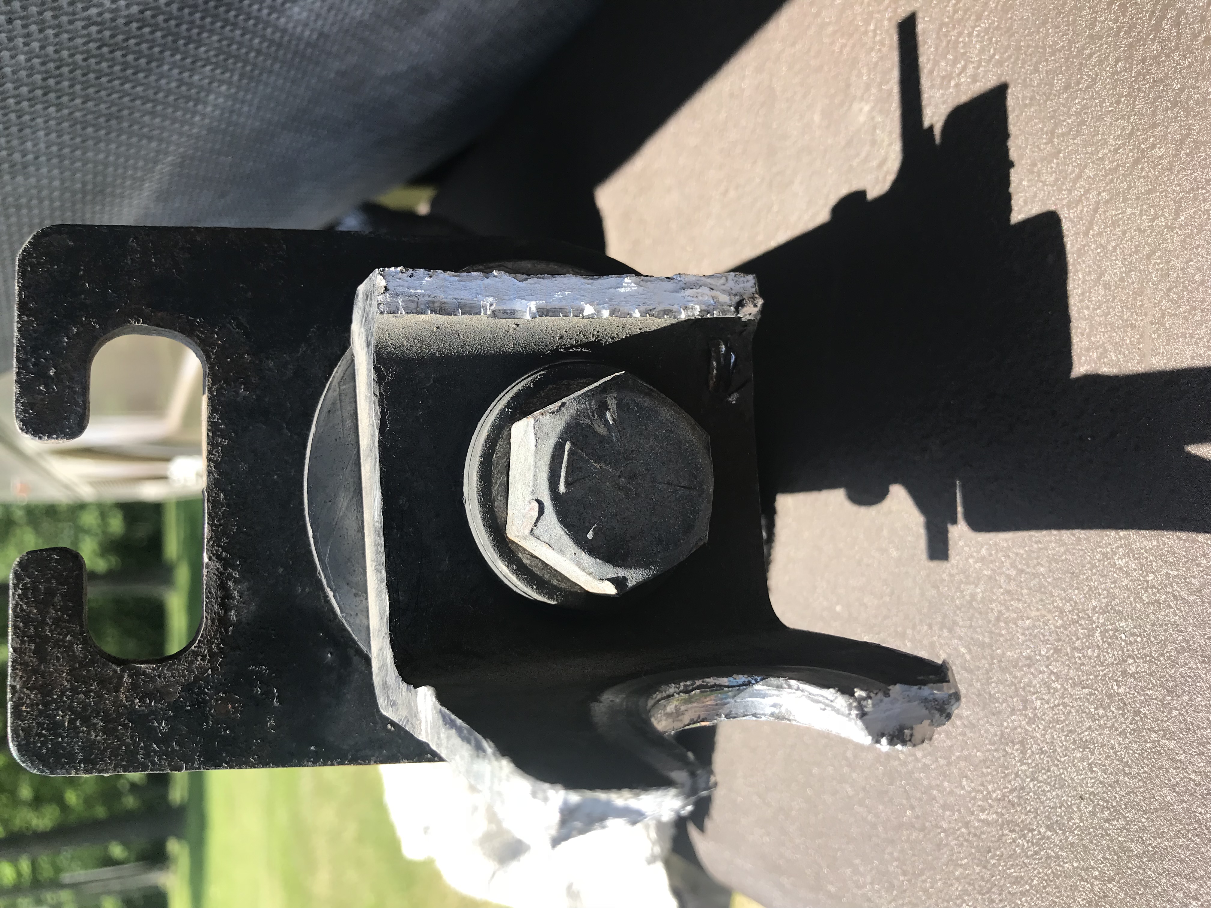 Have you noticed that Blue Ox changed their design. They no longer let that clevis rotate. Here's one of their new bars: http://www.blueox.com/tow-bars/bx4370bx4...t-tow-bar/. Notice that the rotation about the x-axis (the direction the vehicle is traveling) now occurs at the middle joint. The first joint now has fixed ears welded to the receiver tube. I guess we now know the problem with the old design: one of the ears of the clevis fails, most likely the one that failed at the bolt hole, then the clevis rotates and the other ear breaks in bending. Probably doesn't matter if the clevis is made of steel or T6 aluminum, In this scenario both materials would break. The new design eliminates this. More better!